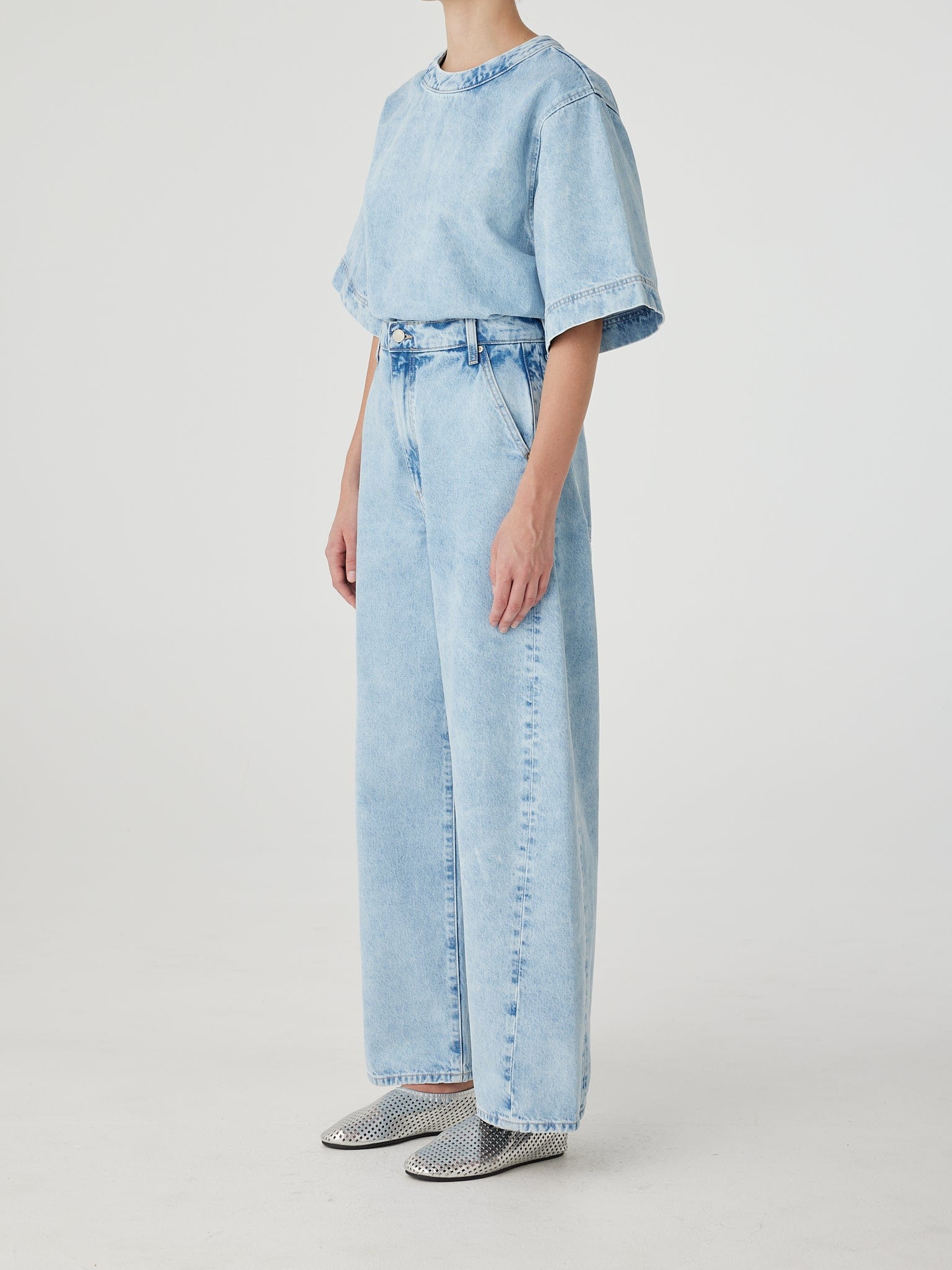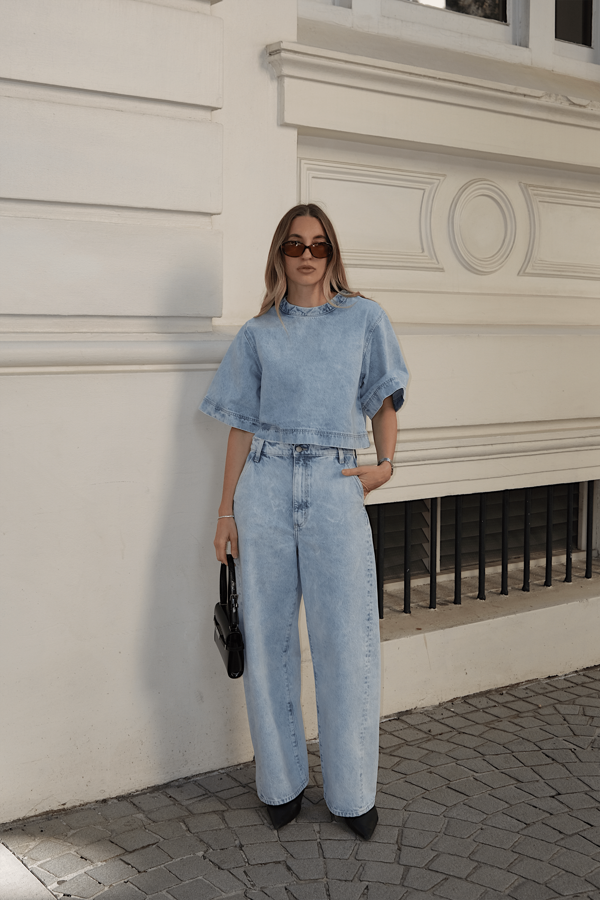 Our standout barrel leg jean. The Luna Jean sits high on the true waist, is relaxed through the hip and leg, with a barrel leg profile that finishes at the top of the shoe. Featuring side pockets and side panel details.