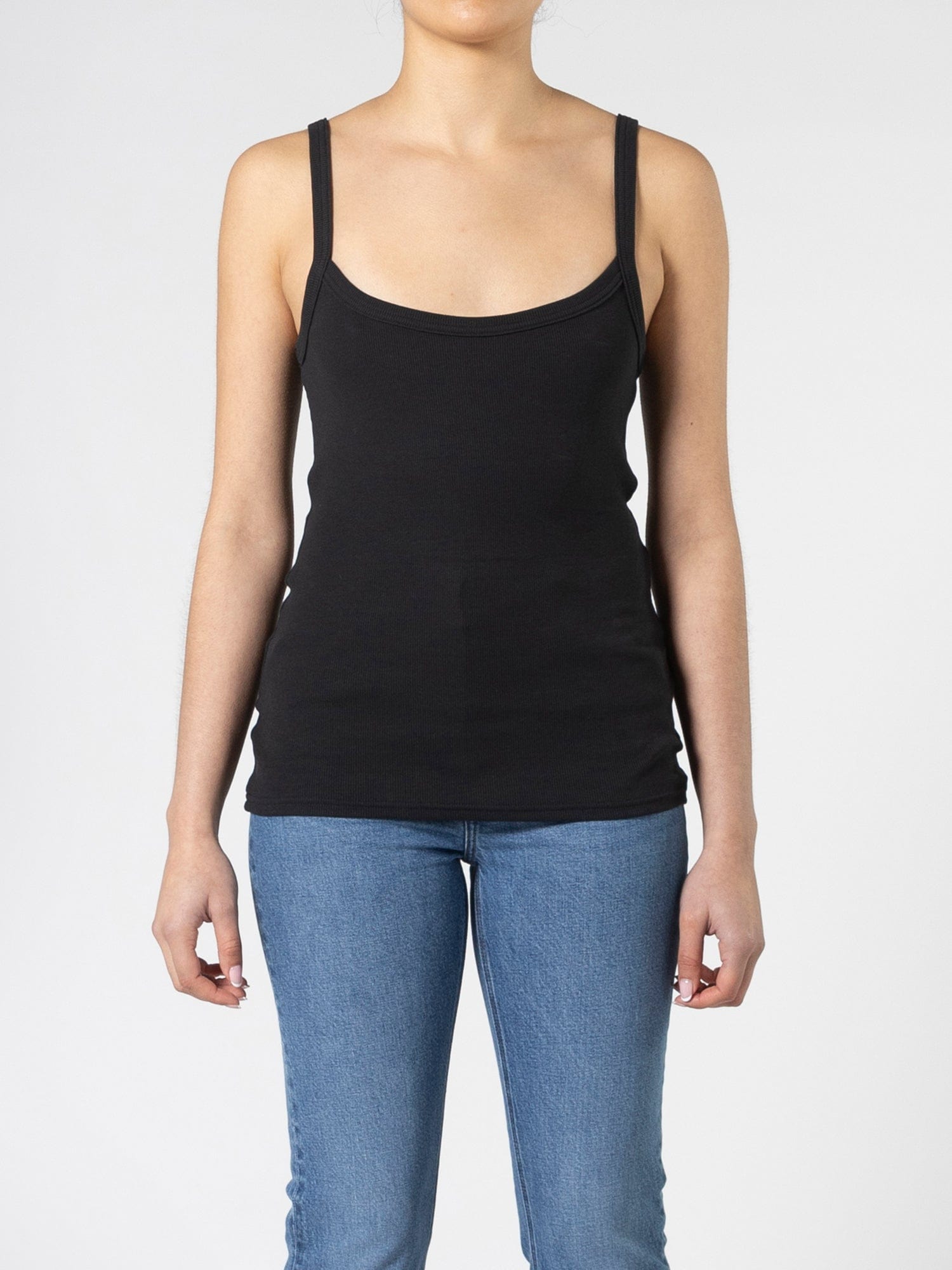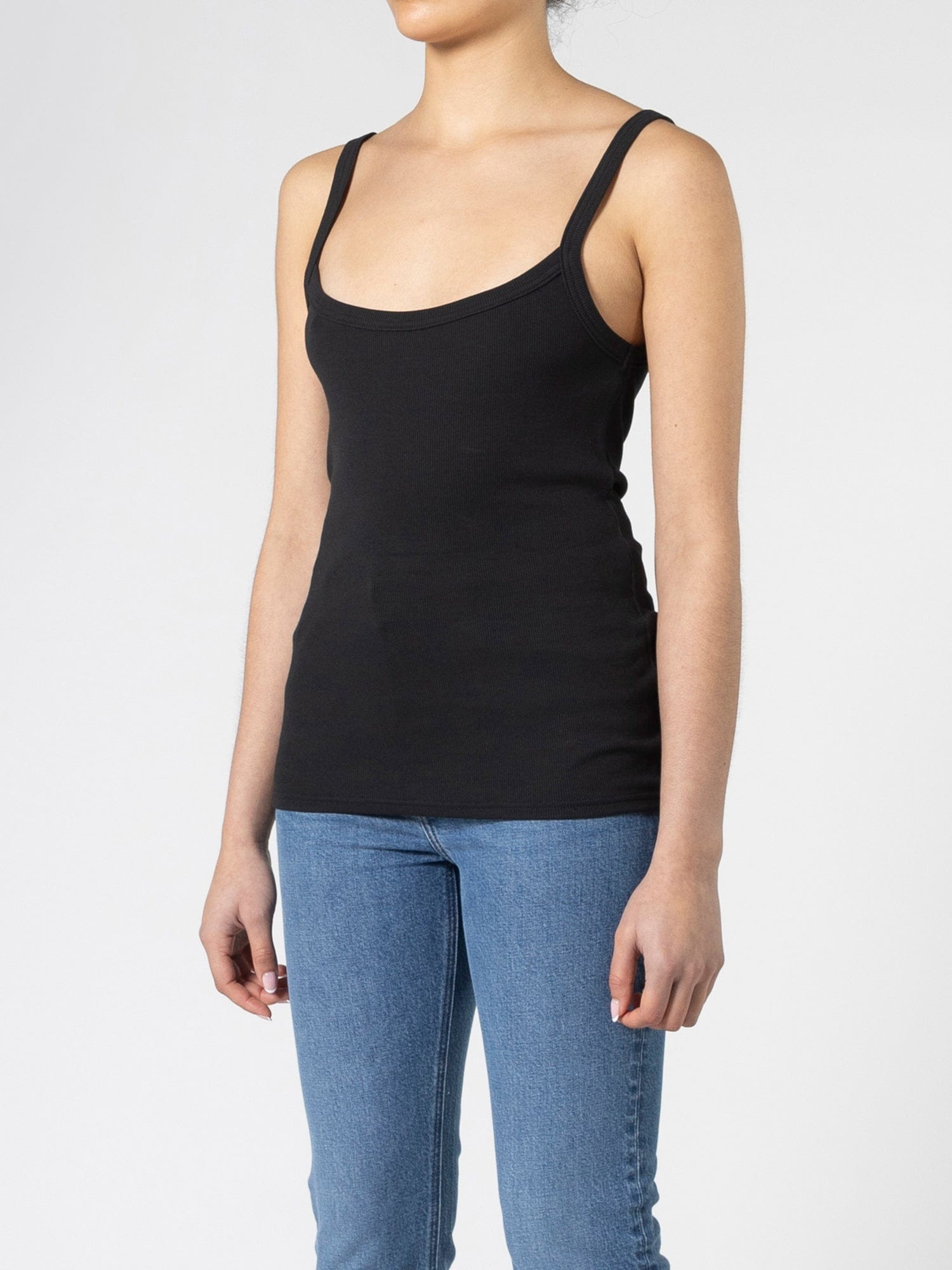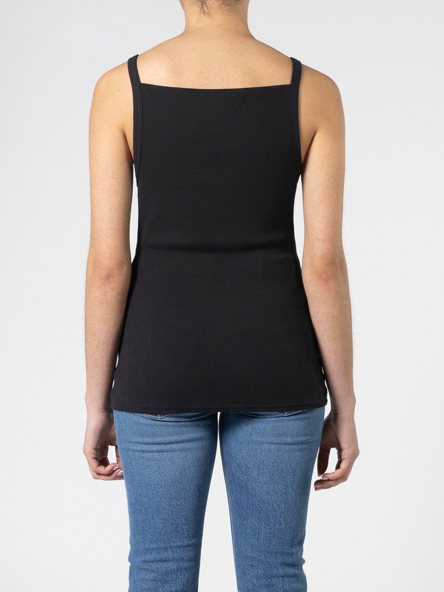 Our unique two-way tank. The Lani Reversible Tank is fitted through the body and features two neckline options. Can be worn as both a boatneck and scoop front tank.
