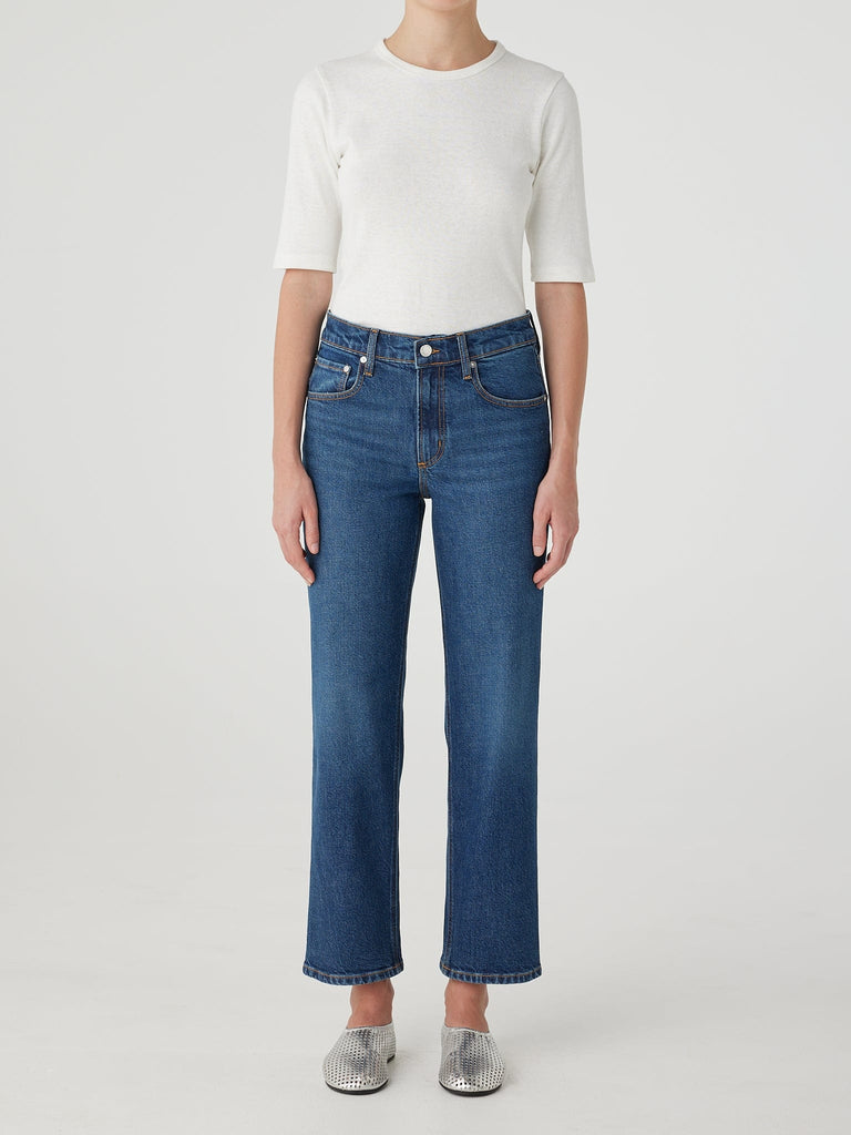 The Erin Jean sits just below the navel, is fitted through the hip, following a straight leg profile to the ankle. Crafted from premium comfort stretch denim.
