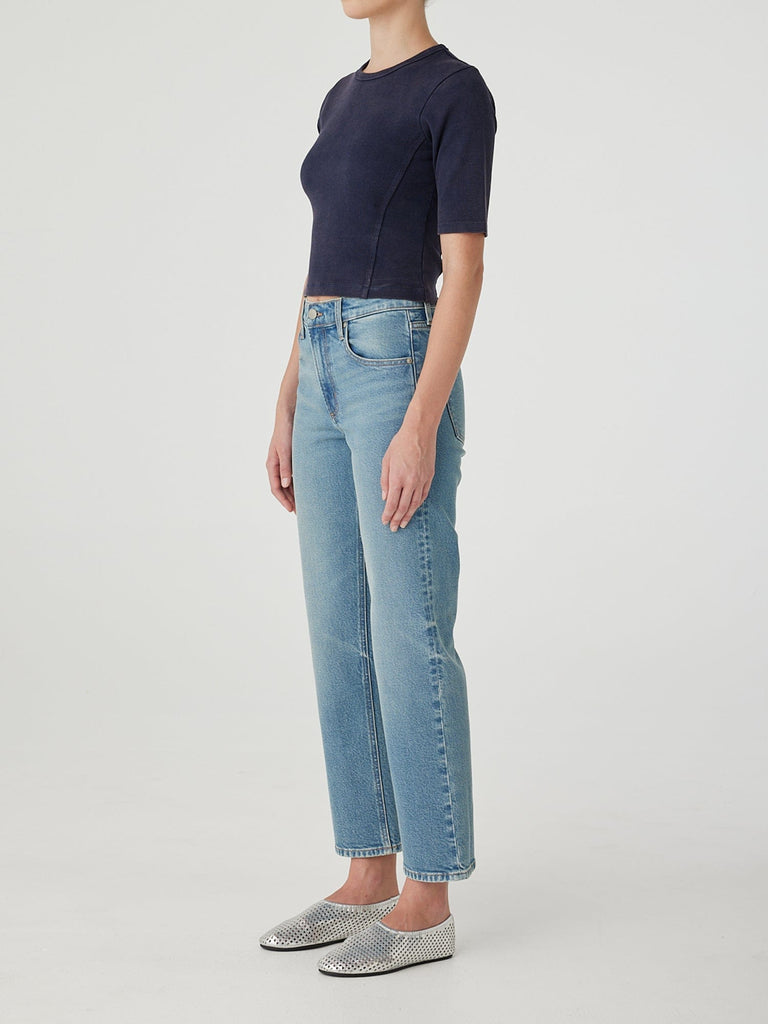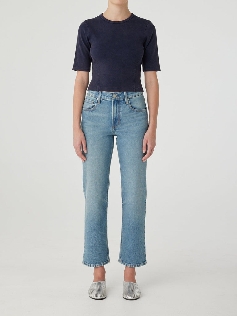 Our always reach for straight jean. The Erin Jean sits just below the navel, is fitted through the hip, following a straight leg profile to the ankle. Crafted from premium comfort stretch denim.