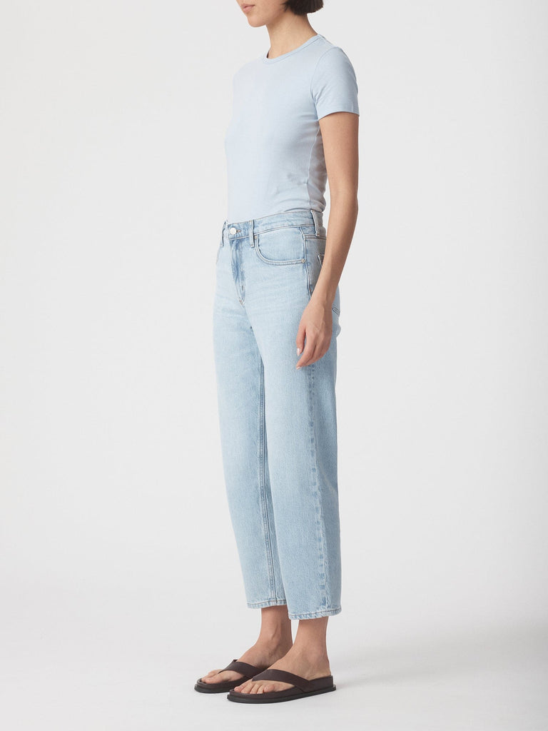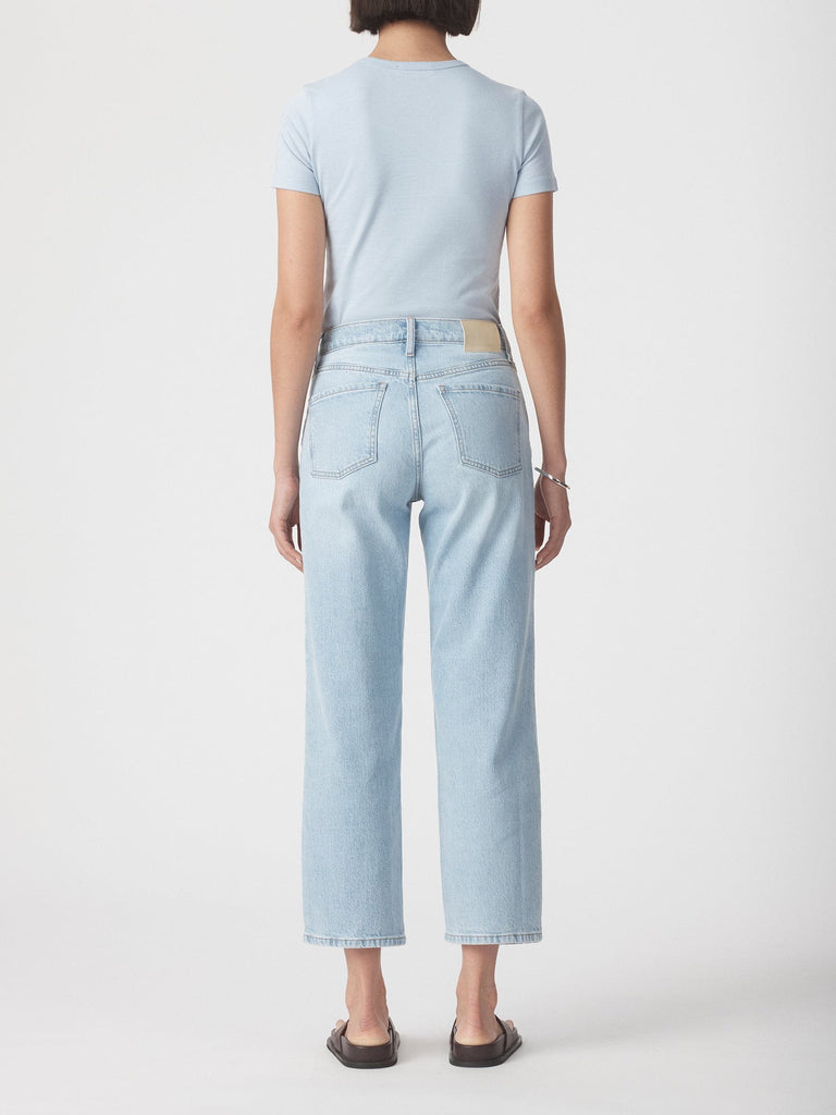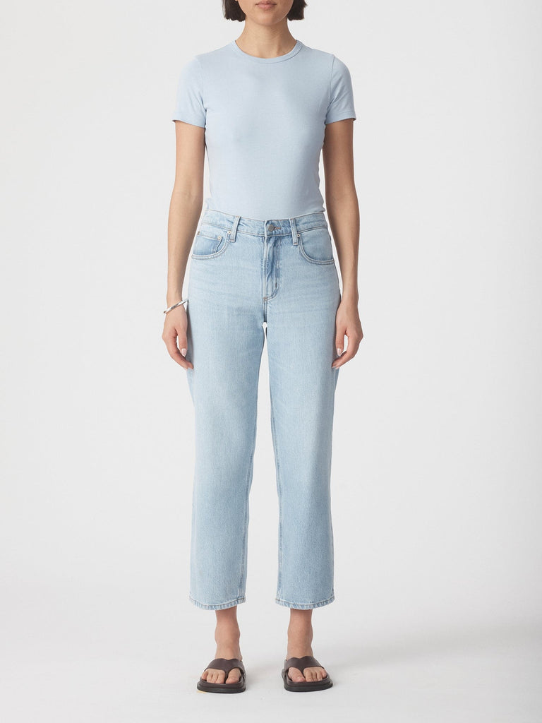 Our always reach for straight jean. The Erin Jean sits just below the navel, is fitted through the hip, following a straight leg profile to the ankle. Crafted from premium comfort stretch denim.