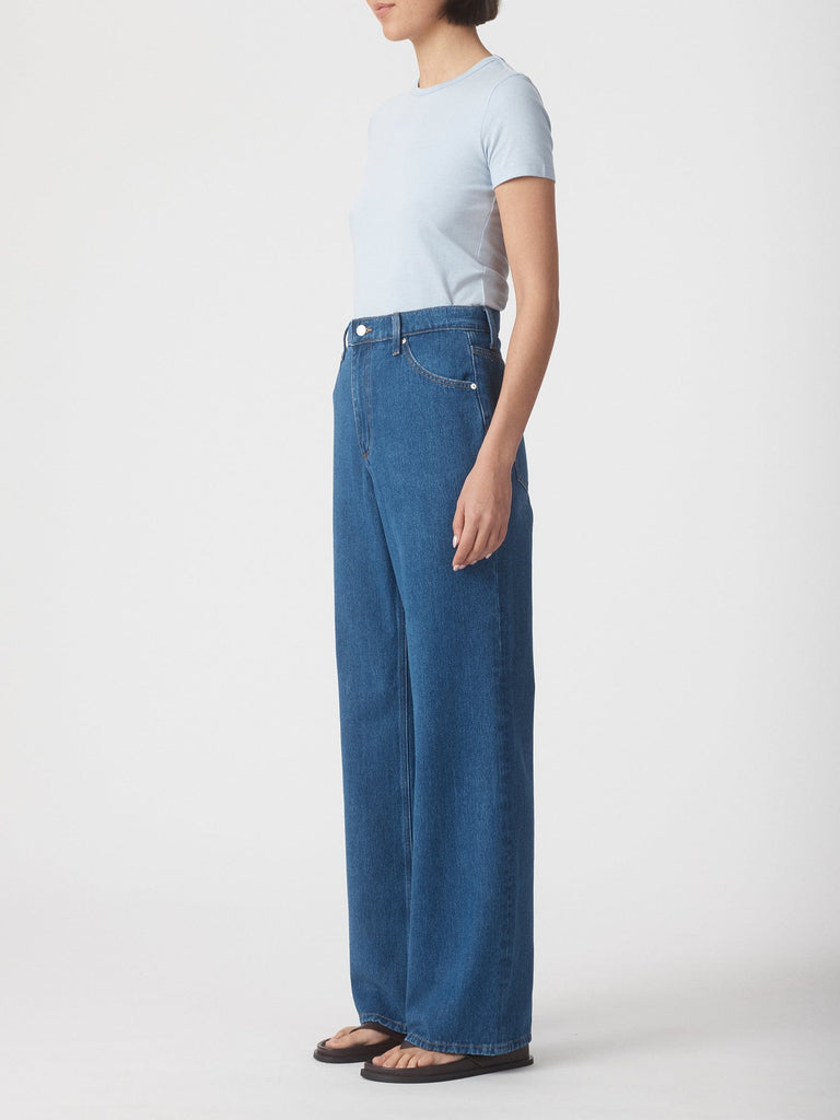 Our classic wide leg jean. The Grace Jean sits on the true waist, is fitted through the hip and follows a wide leg profile from thigh to hem, designed to sit over your shoe. Crafted from premium rigid denim.